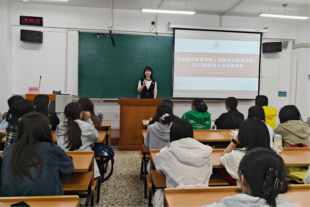为深化大学生理想信念教育,加强对党的认识,端正入党动机,号召2025级新生积极向党组织靠拢,9月29日上午,创新创业教育学院(创新创业教育中心)在汇文楼441开展2025级新生入党启蒙教育。会议由学院组织员刘锐主持,学院党委书记綦明霞、全体2025级学生参加。