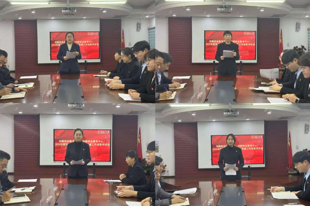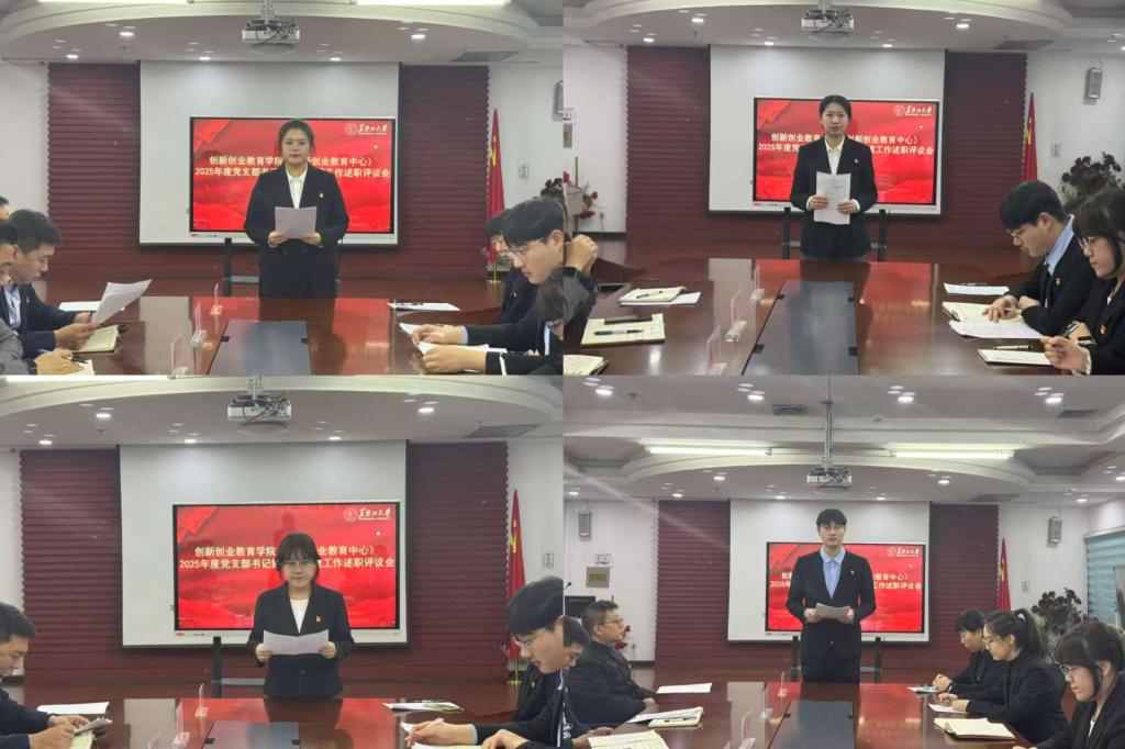 为深入学习贯彻习近平新时代中国特色社会主义思想,切实压实基层党建工作责任,12月30日上午,创新创业教育学院(创新创业教育中心)召开2025年度党支部书记抓基层党建工作述职评议会,学院党委委员、党支部书记、党员代表参加会议,会议由学院党委书记綦明霞主持。