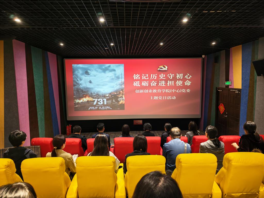 为纪念中国人民抗日战争暨世界反法西斯战争胜利80周年,进一步弘扬爱国主义精神,激发师生党员的责任感与担当精神,9月25日下午,创新创业教育学院(创新创业教育中心)党委开展“铭记历史守初心,砥砺奋进担使命”主题党日活动,集中观看电影《731》,学院全体教师和学生党员代表参加活动。