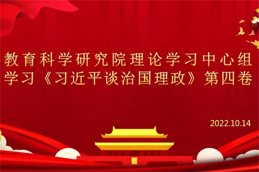 2022年10月14日19时,教育科学研究院党总支理论学习中心组于线上开展专题学习,学习内容主要为《习近平谈治国理政》第四卷和全国教书育人楷模杨士莪先进事迹,本次学习由教育科学研究院教育行政联合党支部书记徐建华领学,理论学习中心组全体成员参加,院长王世红列席,会议由学院党总支书记金鹏主持。