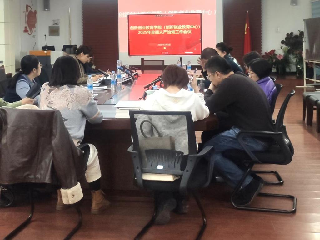 为推动全面从严治党向纵深发展、向基层延伸,3月5日下午,创新创业教育学院(创新创业教育中心)召开2025年全面从严治党工作会议,会议由学院党委书记綦明霞主持,学院全体教师参会。