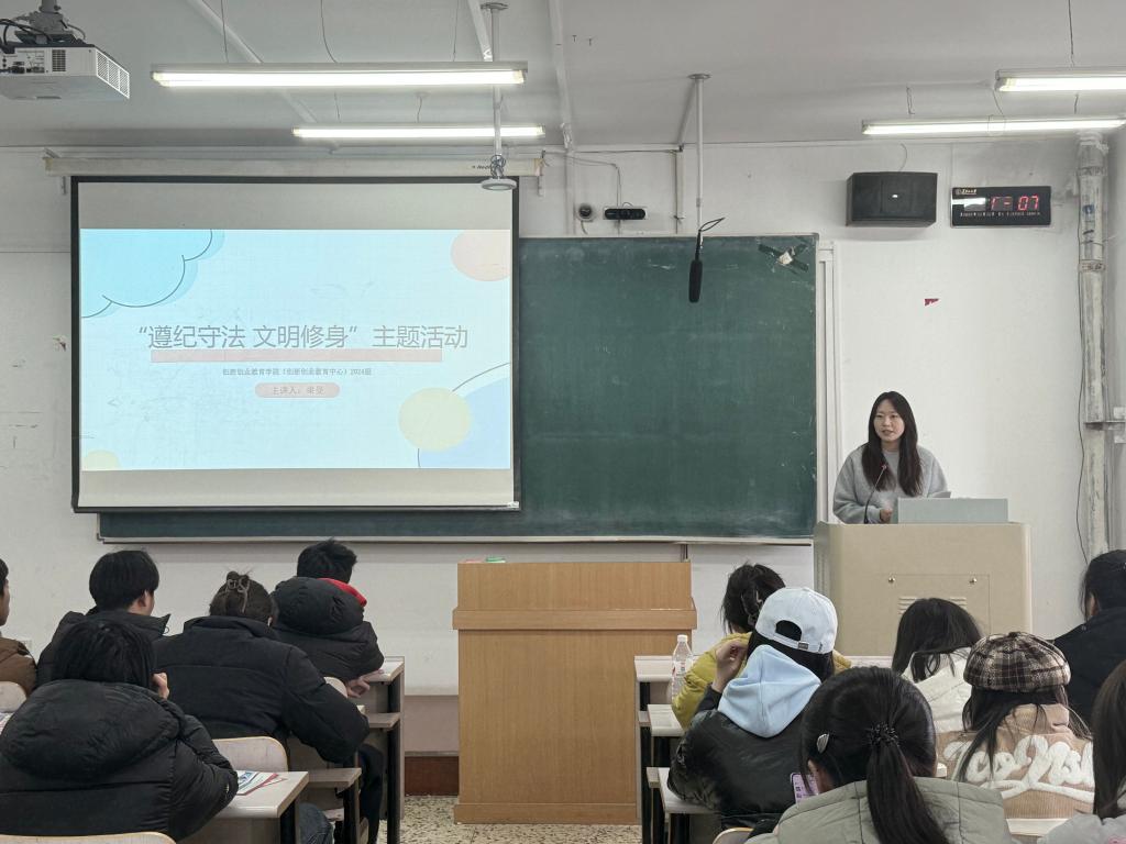 为引导全院学生强化法治与规则意识,将“遵纪守法”内化为成长自觉,把“文明修身”融入创新创业实践。创新创业教育学院(创新创业教育中心)各班级开展“遵纪守法,文明修身”的主题班会活动,全院各年级学生共同参与。