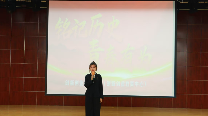为传承伟大抗战精神、厚植青年爱国情怀,纪念中国人民抗日战争暨世界反法西斯战争胜利八十周年,深入推进党的二十大和二十届三中、四中全会精神落地生根,创新创业教育学院(创新创业教育中心)积极响应校团委号召,于11月26日在大学生活动中心三楼多功能厅,开展“铭记历史 青春有为”主题团日活动。创新创业教育学院(创新创业教育中心)党委副书记屈广宁、学院团委副书记王馨莹、周子林、王冠琪及2025级全体学生共同参与这场红色盛宴,在沉浸式体验中凝聚奋进力量!
