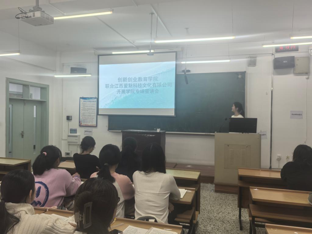 为精准对接数字文创产业人才需求,搭建校企交流桥梁,完善产教融合机制,助力毕业生高质量就业,创新创业教育学院于4 月 4 日在三号楼举办江西爱魅科技文化有限公司专场宣讲会,部分2025 届毕业生积极参与。